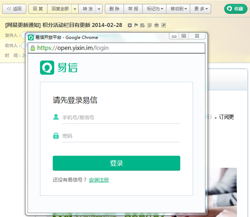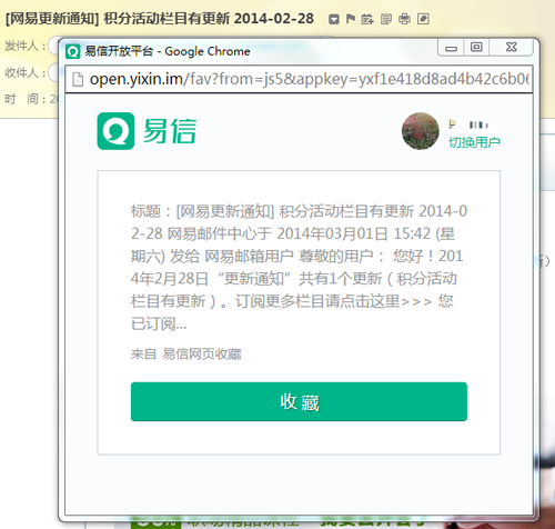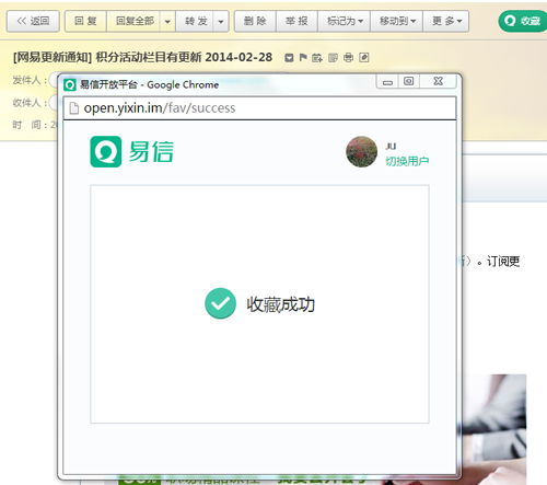 网易邮箱整合易信 邮件正文易信收藏