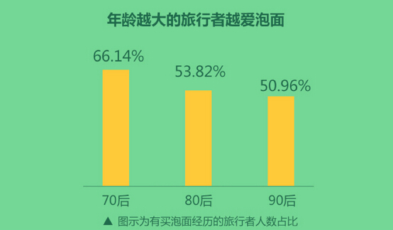 年龄已经成为旅行中对方便面依赖程度区别的重要指标,方便面进入中国是在1980年代中期,正值青少年时期的70后见证了方便面在中国风靡的整个过程,对方便面的感情颇深,而90后出生在注重健康饮食的时代,在乳制品大行其道的时代,对方便面情感也没有那么浓烈了。