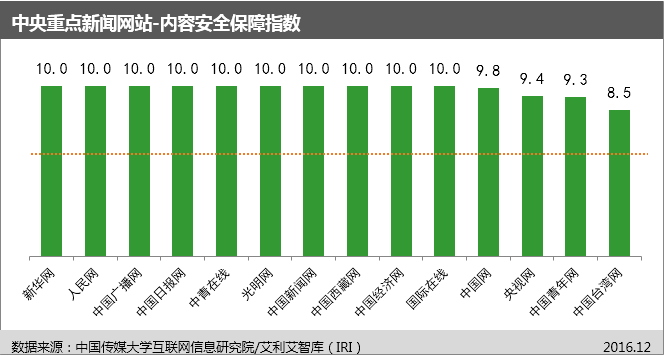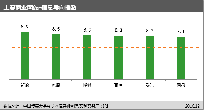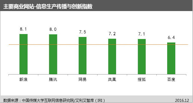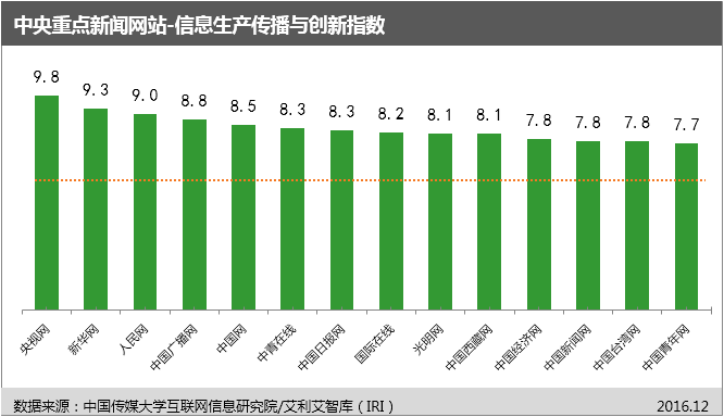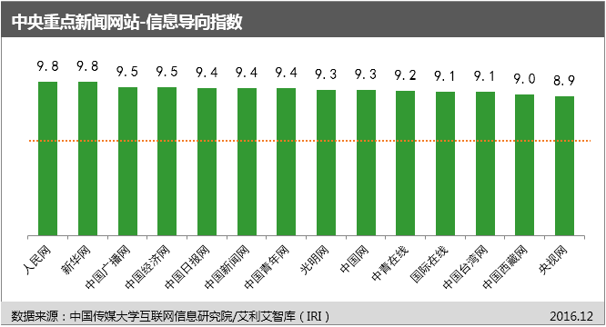 近日,中国传媒大学互联网信息研究院发布了2016年12月份的《国内主要新闻网站信息生态首期评估报告》,报告的测评范围包括国内14家中央重点新闻网站、6家主要商业新闻网站。具体呈现以下特点: