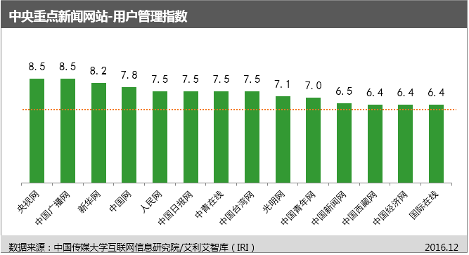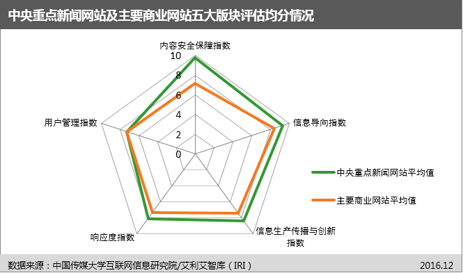 信息生产传播与创新方面、信息导向以及内容安全保障方面,中央重点新闻网站表现较好,各网站之间差异不大;用户管理、响应度方面,整体仍还需要加强。各网站具体情况如下: