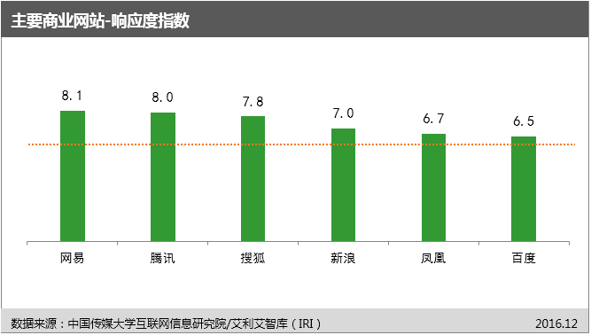 主要商业网站在响应度基本能够达到处理用户投诉,网易、腾讯对社会举报响应比较积极。加强外部响应机制的完善与落实,与其他机构平台建立良好的联络共享机制,有助于提升网站信息内容的准确性,促进网站信息生态内容建设。